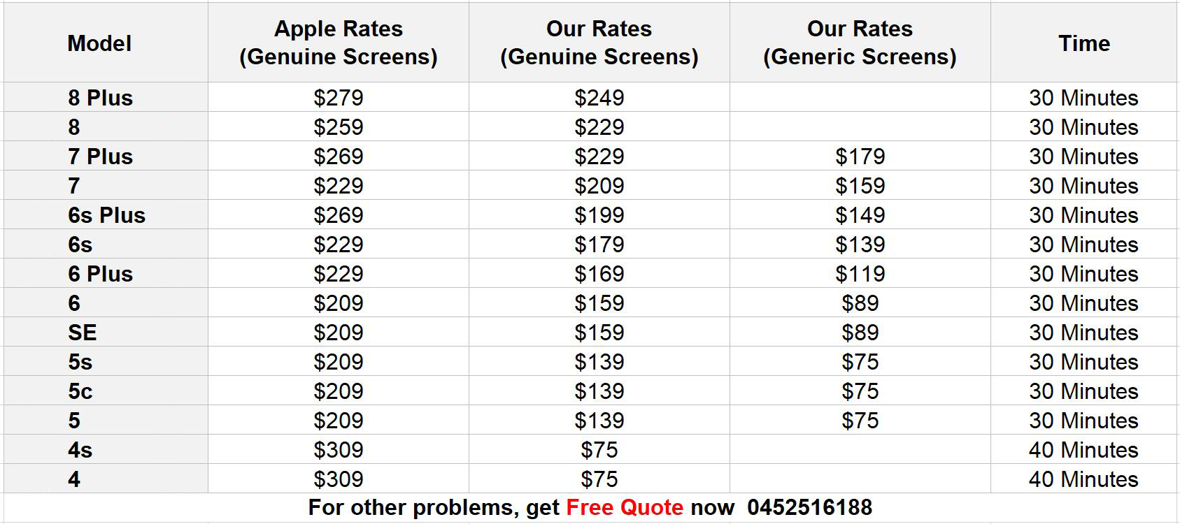 Rates For Phone Screen Replacement